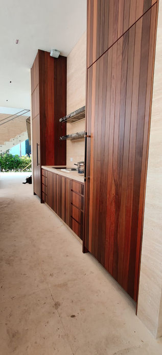 Full new kitchen with Lab Design Walnut, Walnut credenza and wall panels, mini bar, and built-in cabinets, vanities, and more.